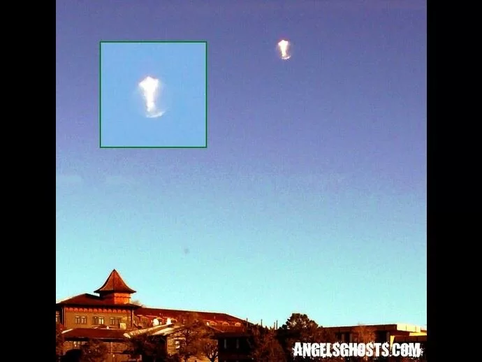 January, 2012, Jeff N. was near Bright Angel Lodge, set up next to Lookout Studio at the Grand Canyon, South Rim when he took a series of photographs. In one of the pictures, there was an anomaly that looks like the location name: bright angel. In fact, there is also a Bright Angel Trail and Bright Angel Creek. So, we were wondering why these places were called Bright Angel and if there could have been an angel sighting near these locations. We did some digging, so read on, and find out the answer.